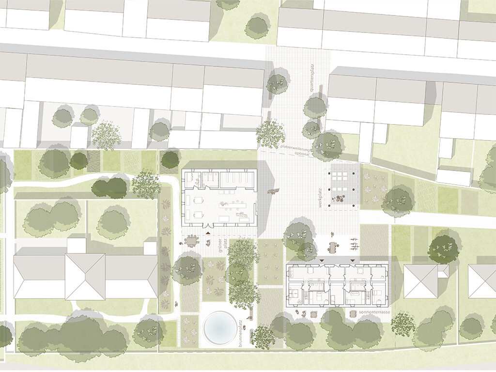Für ein Grundstück mit vier baulich stark beeinträchtigten Objekten im Ortskern wurde eine Umnutzung oder Neuplanung als Künstlerresidenzen gesucht, welche auch langfristig vielseitige Wohnnutzungen ermöglicht. Zehn Studierende der Kunstuniversität Linz entwickelten unterschiedlichste Entwürfe in Stampflehmbauweise – von durchmischtem altersgerechten Wohnen bis zu Clusterwohnungen mit mehreren kombinierten Einheiten.